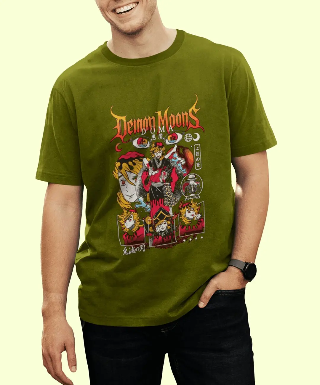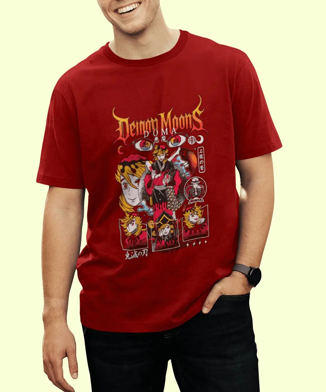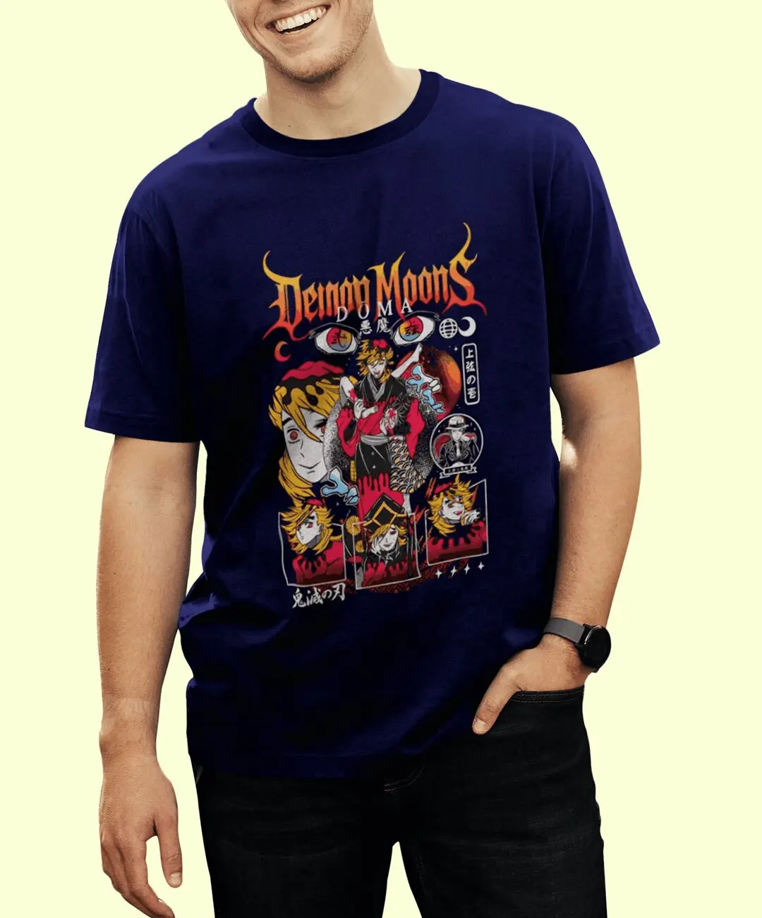 Doma, the Upper Moon Two demon, is feared not because of rage, but because of his emotionless cruelty. His calm smile hides overwhelming power, making him one of the most dangerous characters in the Demon Slayer universe. This t-shirt translates that unsettling duality into a unique anime graphic that feels intense yet controlled. The artwork reflects Doma’s cold personality, layered symbolism, and villainous elegance, making it a statement piece rather than ordinary anime merchandise.