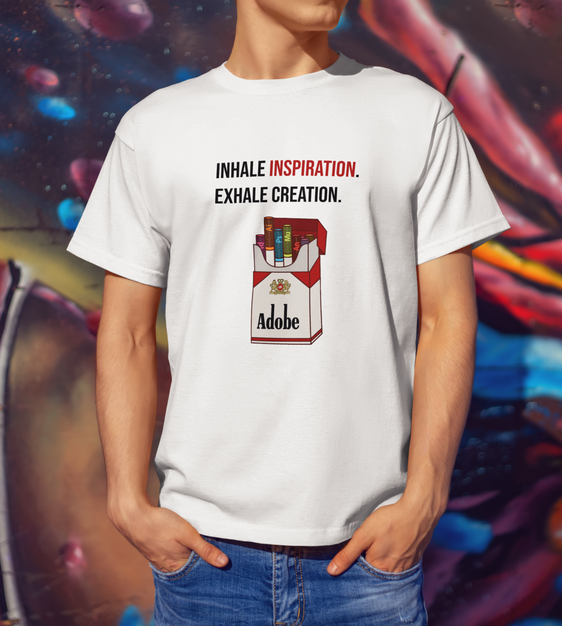 Whether you’re attending design conferences, working from your home studio, or hanging out with fellow creatives, this unique Adobe designer shirt perfectly captures the creative professional’s lifestyle. The clever cigarette pack parody resonates with anyone who’s ever felt “addicted” to Photoshop, Illustrator, or any Designing software.