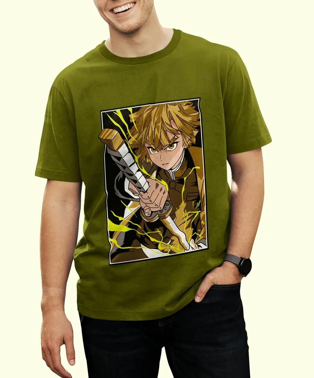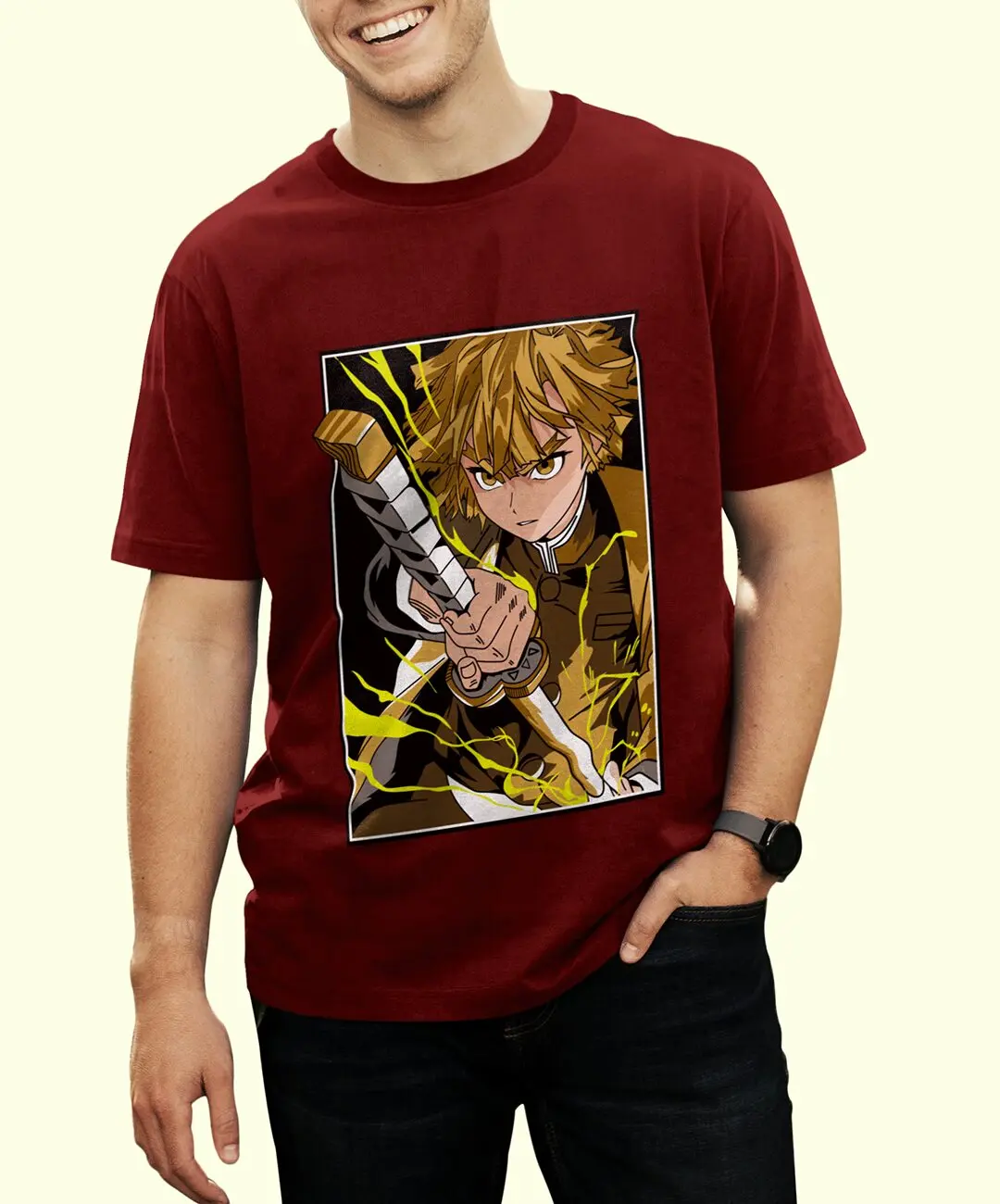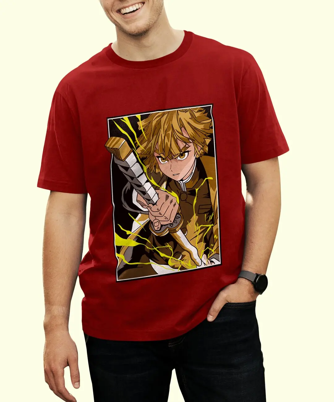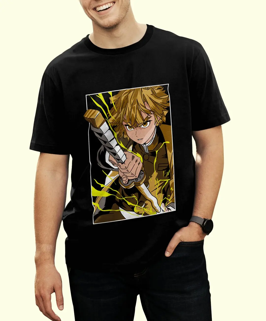 This Zenitsu t-shirt works across multiple contexts: